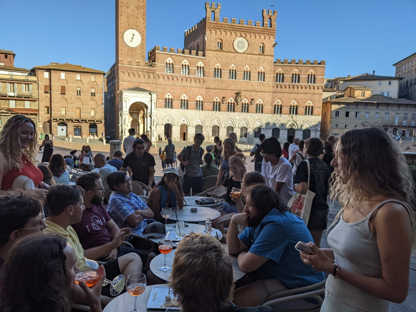Students enjoying an aperitif at Piazza del Campo in Siena